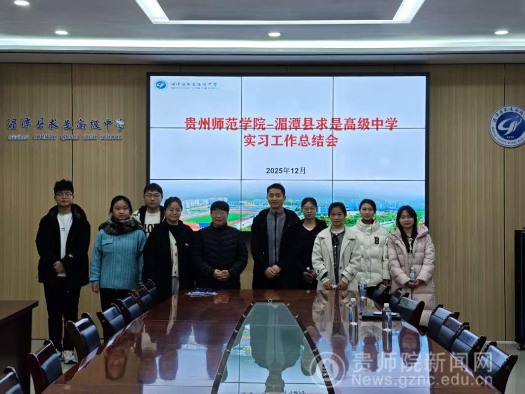 本网讯 2025年12月30日,湄潭县求是高级中学为贵州师范学院实习生召开实习总结大会,标志着为期一段时间的教育实习工作圆满落幕。湄潭求是高级中学副校长范朝红、贵州师范学院历史与档案学院副系主任黄红副教授出席会议,全体实习生共同参与。