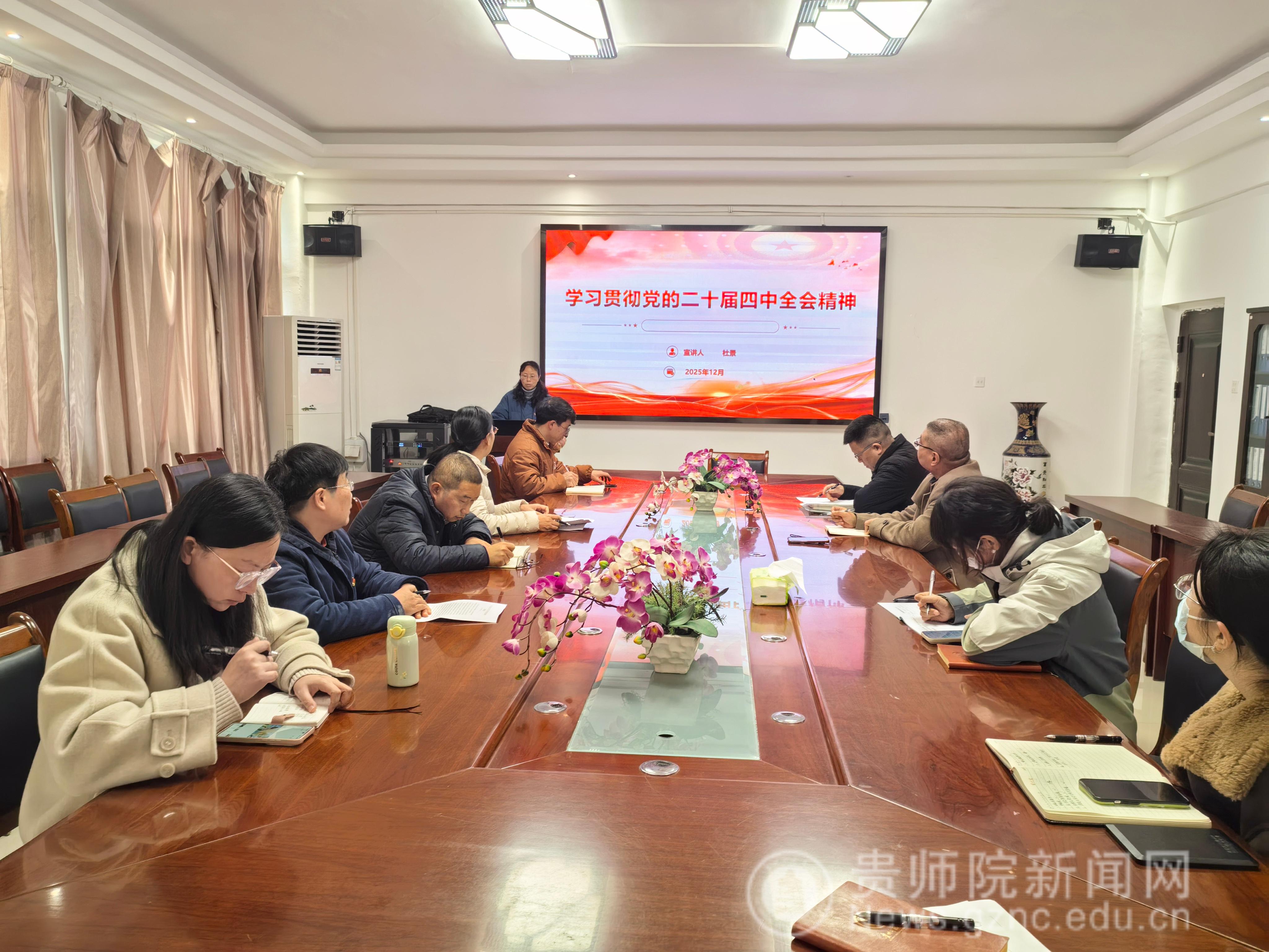 党的二十届四中全会是在向第二个百年奋斗目标进军的新征程上举行的一次十分重要的会议,是接续推进中国式现代化建设的又一次总动员、总部署。当前和今后一个时期我们的重大政治任务,就是推动学习宣传贯彻全会精神走深走实。为了深入学习贯彻党的二十届四中全会精神,12月16日,历史与档案学院党委书记杜景面向教师党支部开展党的二十届四中全会精神专题宣讲,系统解读全会精神的核心要义和实践要求。