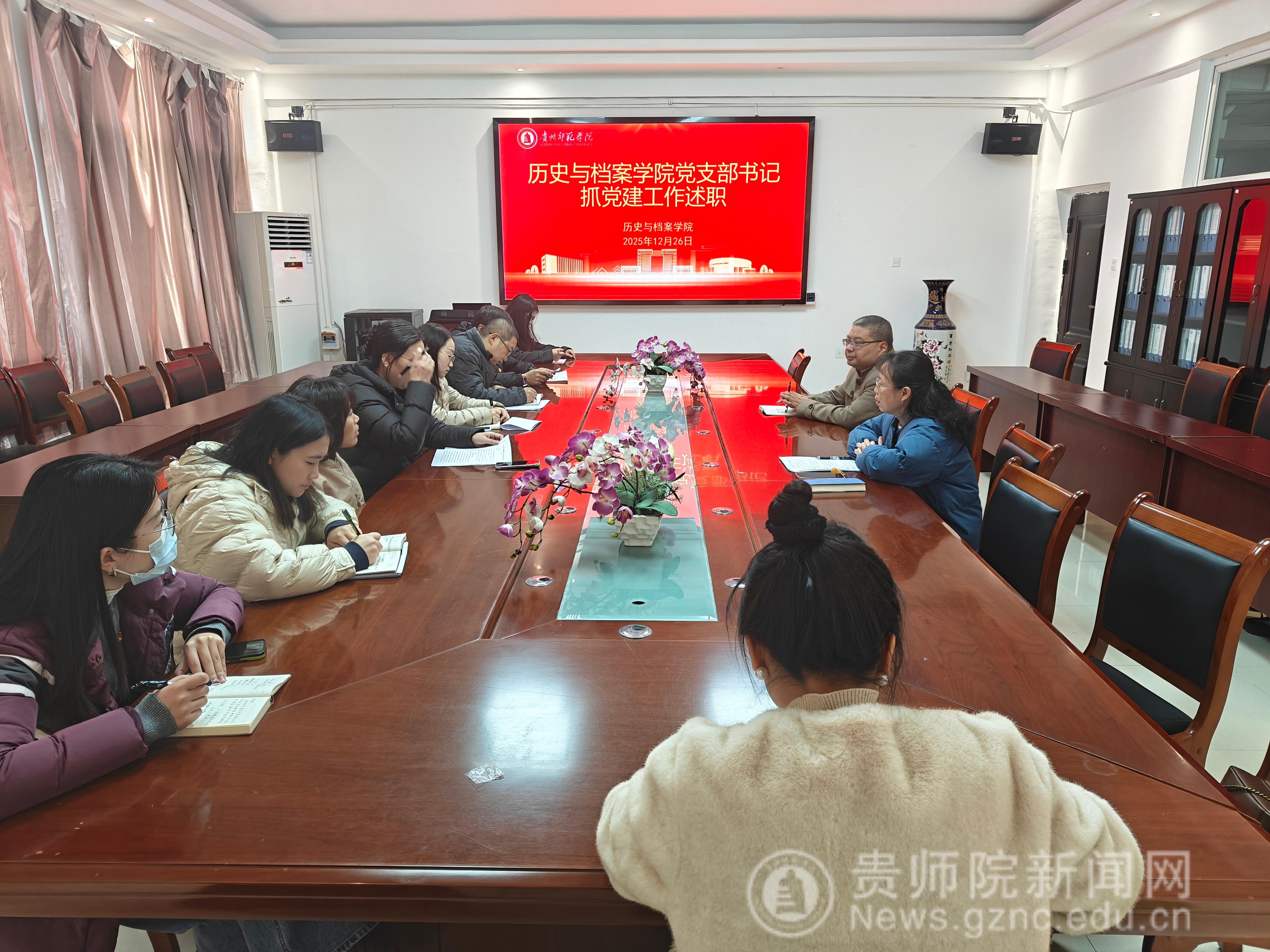 12月26日,历史与档案学院开展2025年度党支部书记抓党建工作述职评议考核会。学院党委书记杜景,党委副书记、院长万国崔,三位党支部书记以及师生代表参会。