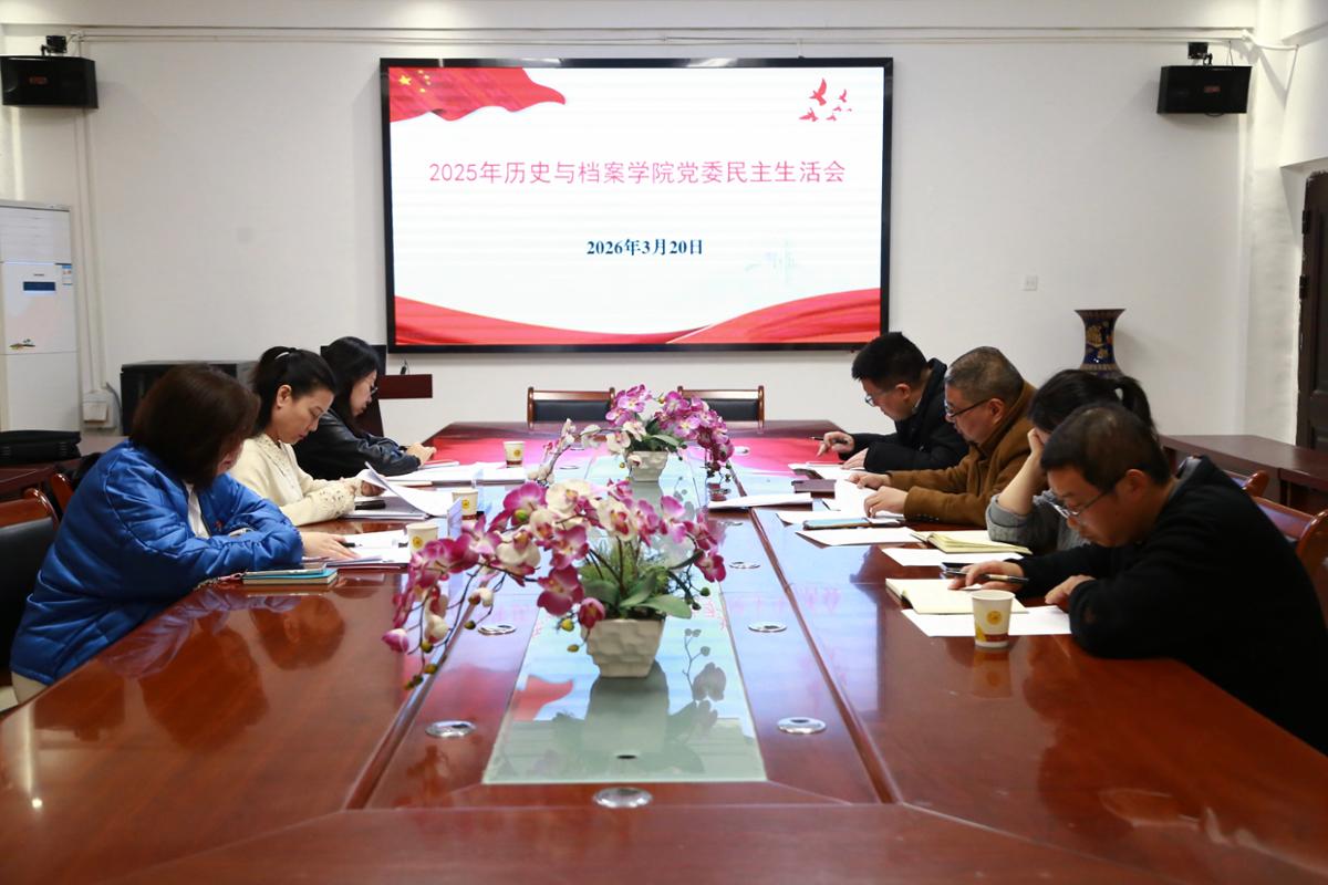 本网讯:根据学校《关于开好2025年度院校两级党员领导干部民主生活会的通知》要求,3月20日下午,历史与档案学院党委在学院会议室召开2025年度党员领导干部民主生活会。督导组组长、校党委副书记邹晓青一行到会指导,学院党委委员出席会议,会议由院长兼党委副书记万国崔主持。