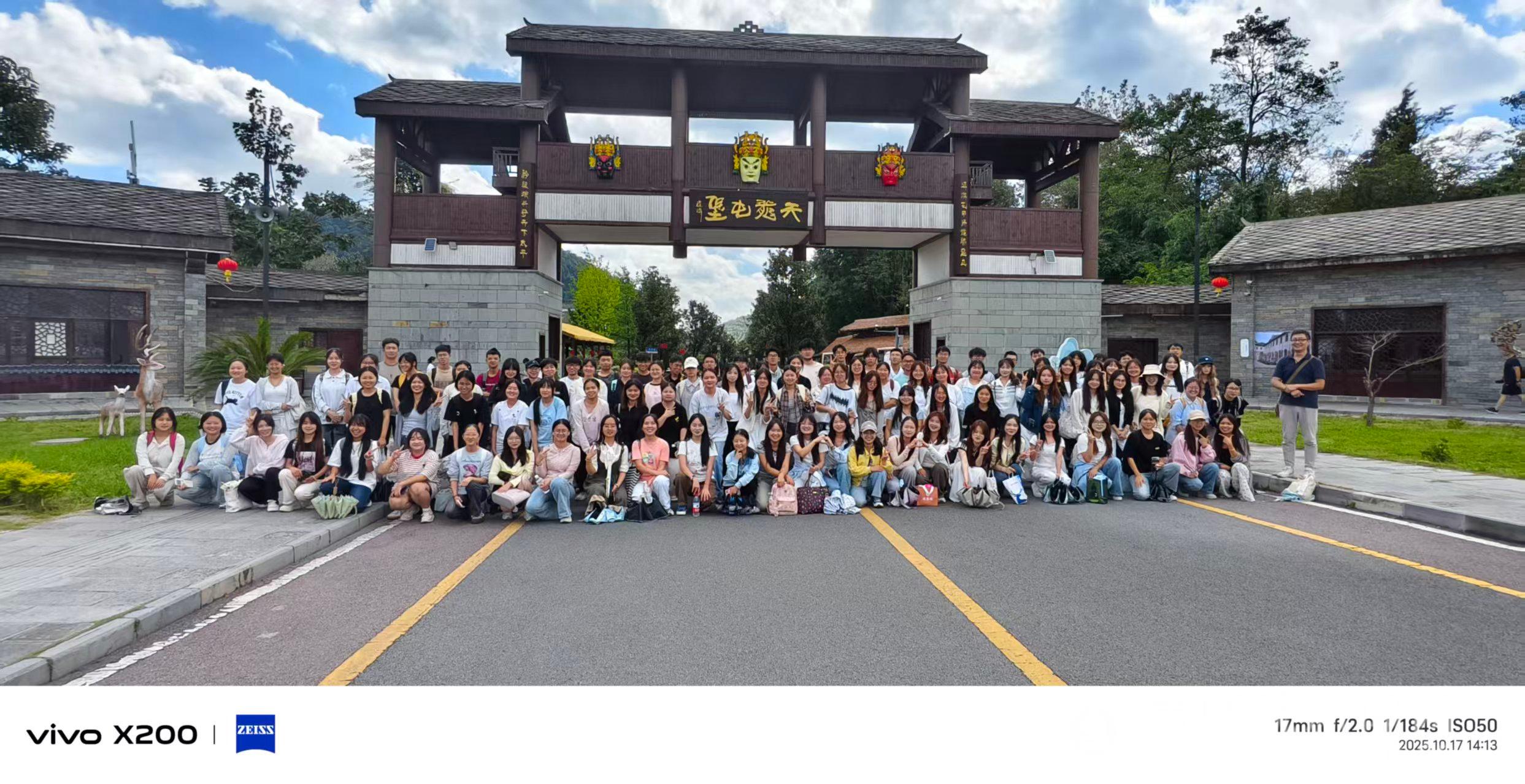 午间,师生们围坐于屯堡长桌宴,品尝天龙屯堡特色菜肴,听当地老人用方言讲述“凤阳汉装”的由来。餐后,两个班级在大门前合影留念,镜头定格下青春面庞与青瓦飞檐的同框画面。返程前,不少同学购买了手工刺绣的香囊、地戏玩偶作为纪念,让文化记忆随行。