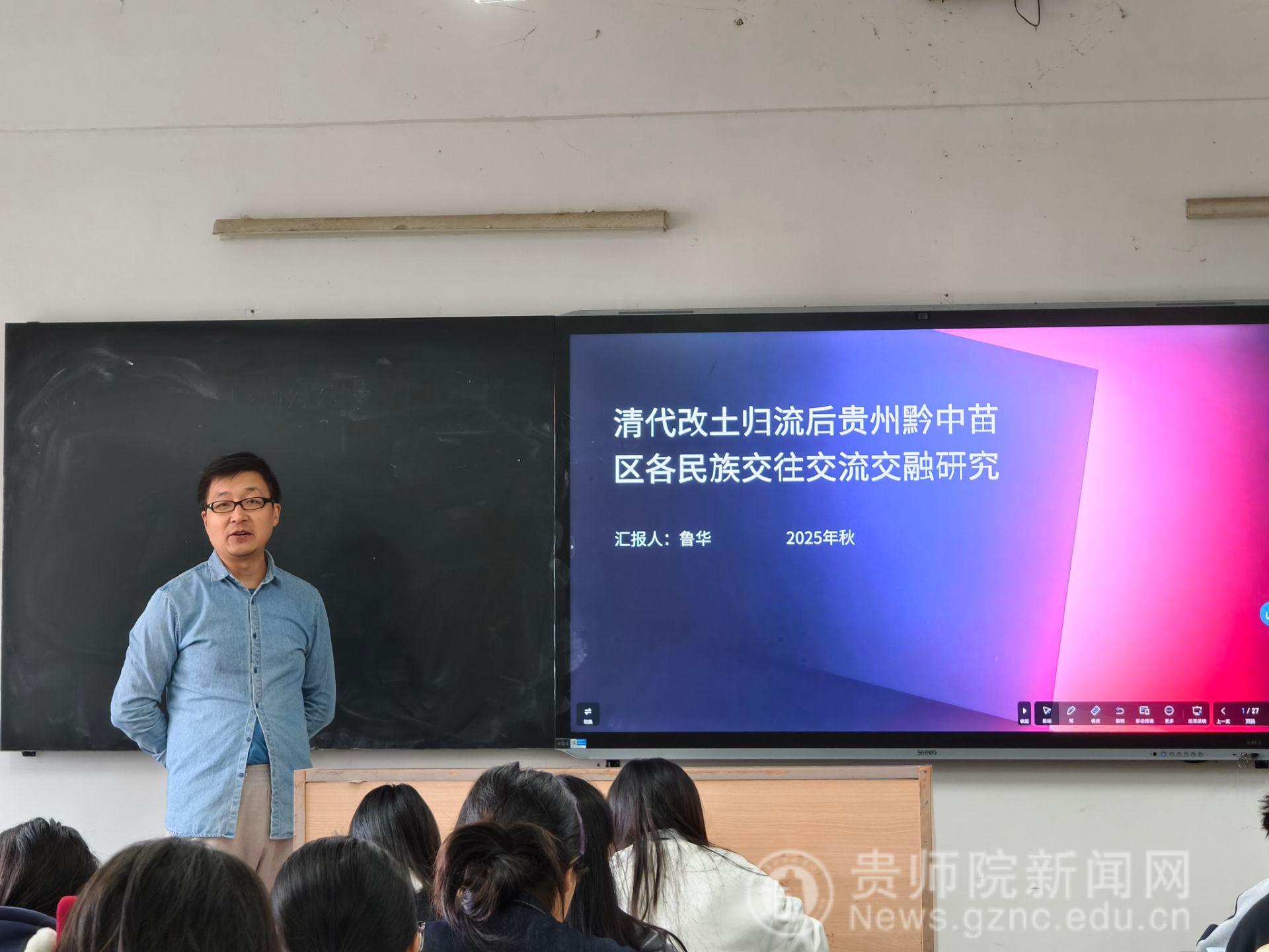 10月22日,明辨楼407教室内气氛热烈,一场聚焦“清代改土归流后贵州黔中苗区各民族交往交流交融研究”的印山讲坛学术讲座在此开讲。本次讲座由鲁华教授主讲,历史学师生共110人参与,探寻清代民族交融印记。