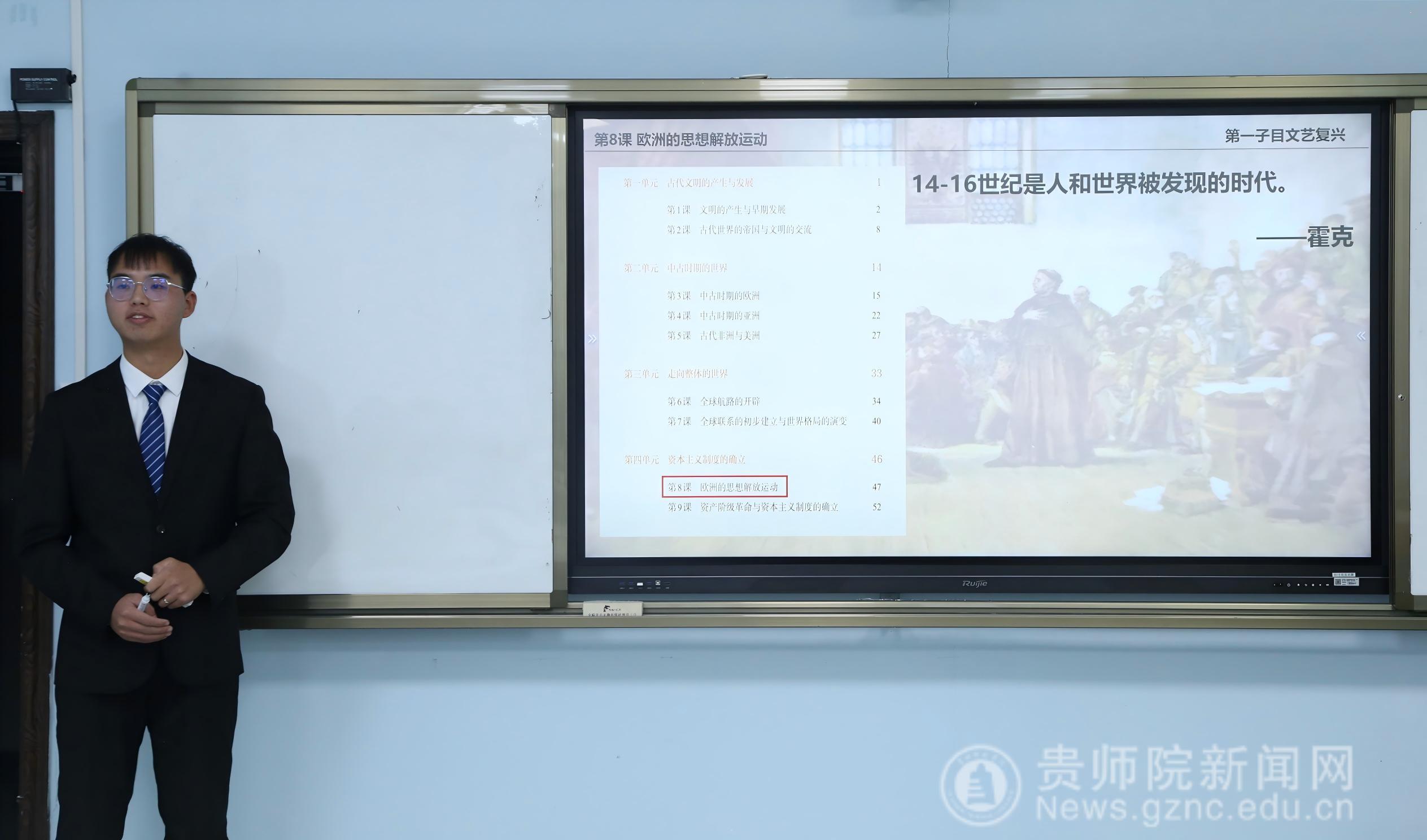 为锤炼师范生教学本领,夯实从教基础,历史与档案学院于11月12日,在综合楼405教室,成功举办优师计划学生教学技能大赛。大赛面向本院2023、2024级优师计划学生,以“以赛促学、以赛促练”为宗旨,优师生负责人朱更勇副教授、历史系主任梁中美副教授担任评委。