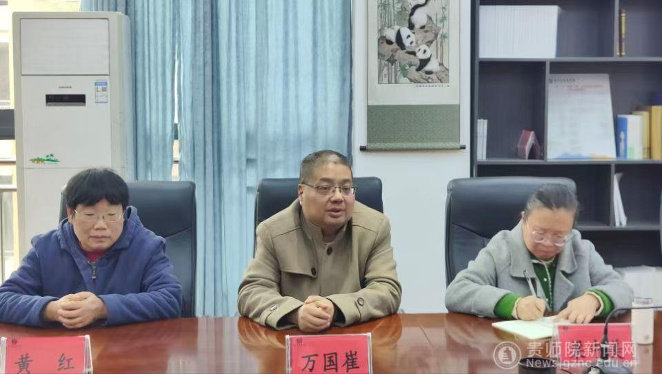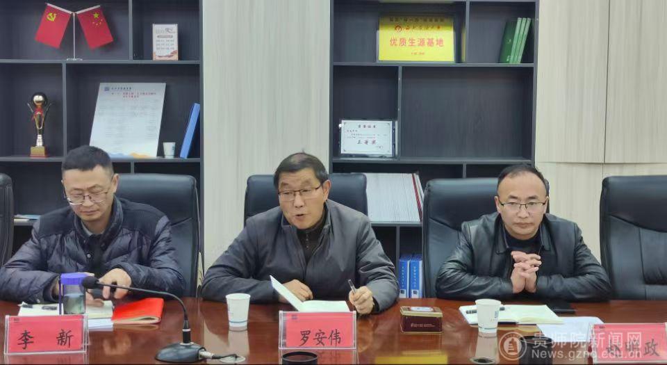 在随后的实习工作交流会上,双方就实习培养与长远合作展开多维对话。乌当中学李新对历史与档案学院师生的到访表示热忱欢迎,并明确表态将针对性解决实习生实习难题,全力搭建教研实践平台,为同学们的专业成长赋能。历史与档案学院万国崔立足人才培养核心目标,向乌当中学提出深化实习实践的建议,恳请校方进一步拓展实习生授课实践场景、开放教研活动参与权限。同时,寄语全体实习生,在实习收官阶段凝心聚力,系统复盘得失,沉淀实践经验,实现能力质的提升。
