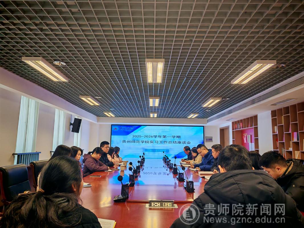 本网讯 2026年1月9日上午,贵州师范学院历史与档案学院历史学专业北师大贵安附属学校实习工作总结座谈会在北师大贵安附属学校会议室隆重举行。北师大贵安附属学校副校长马义军、教学处主任李诗传、副主任刘增钊、副主任顾勇、实习指导教师戴柠莞等老师,以及贵州师范学院历史与档案学院副院长蔡知远、实习生指导教师韦丹凤老师和全体实习生出席了本次座谈会。会议由教学处主任李诗传主持。