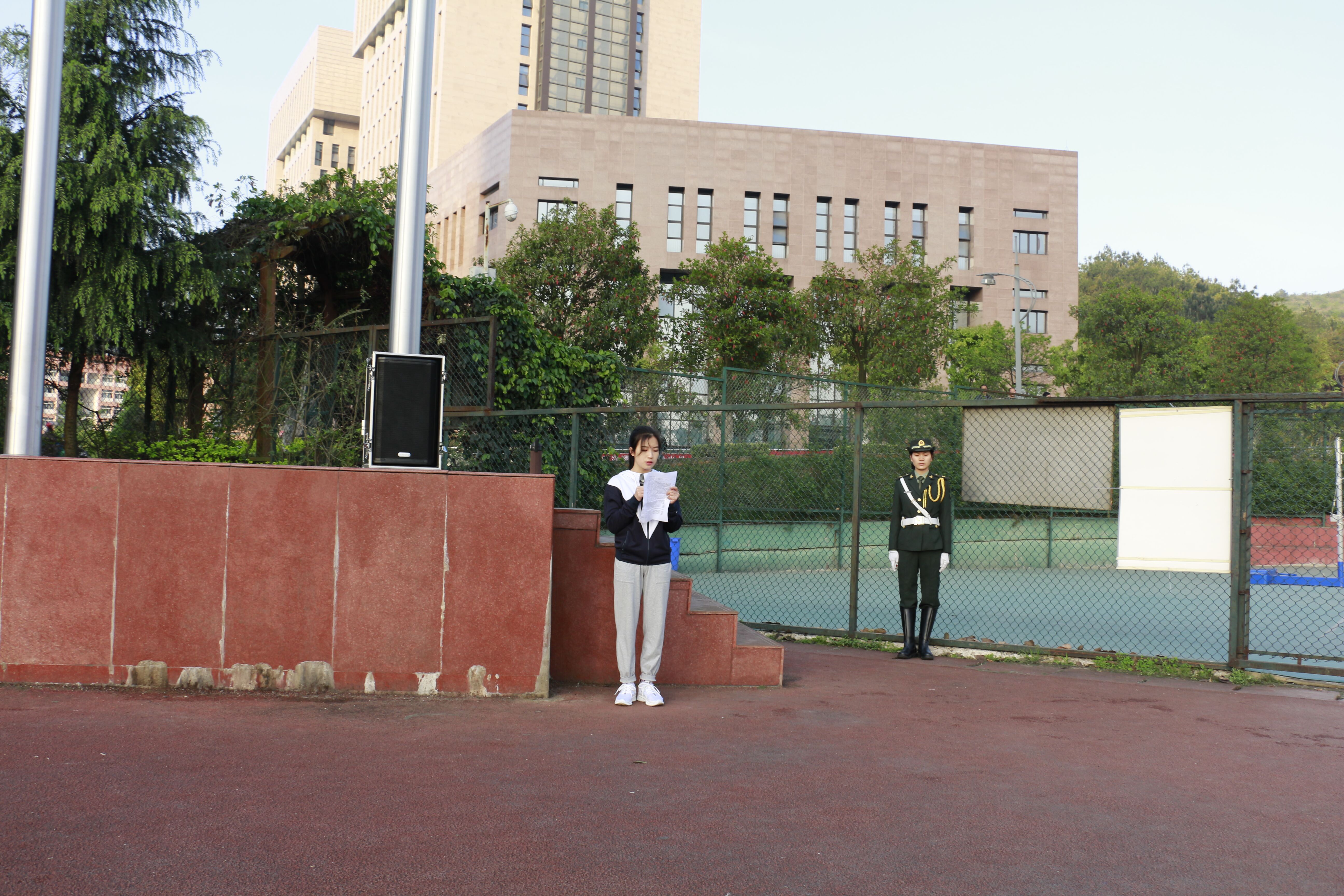 7点15分,升国旗仪式正式开始。学校国旗班成员迈着铿锵有力的步伐走到国旗台下,全场一片肃静。在庄严的中华人民共和国国歌声中,升旗手振臂一挥,鲜艳的五星红旗徐徐展开并上升,在大家的注目中,飘扬在学校的上空。接着,我院2016级历史学一班周芸同学发表了题为《梦想》的演讲。她开篇就强调了在大学期间要有一个梦想,这对于大学生涯成长与发展的重要意义;同时,她也强调梦想的实现是需要长期坚持的,只有二者相互结合,才能收获成长!