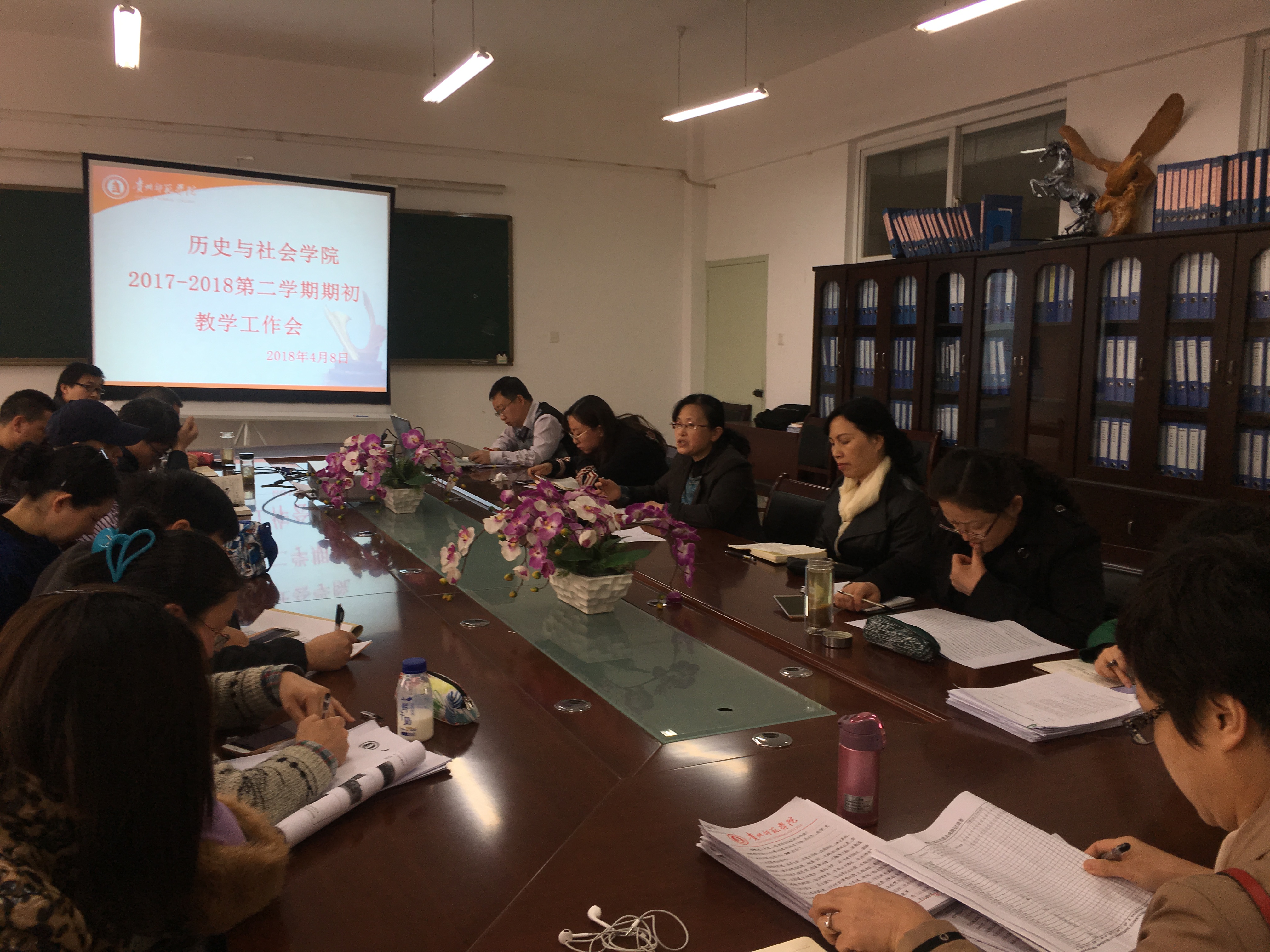 为了提高课堂质量,建立较好的课堂教学应急体系,历史与社会学院于4月8日下午一点在明理楼第八会议室召开了2017-2018第二学期期初教学工作会。学院领导以及全体教职工参加会议,会议由院长申满秀主持。