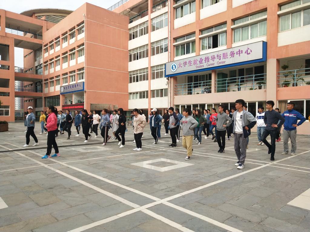 为积极备战第六届体育节,在体育节上一展历史与社会学院学子青春向上的精神风貌。4月27日下午,基层团委学生会组织方队运动员们在文韬苑空地进行开幕式方阵训练。