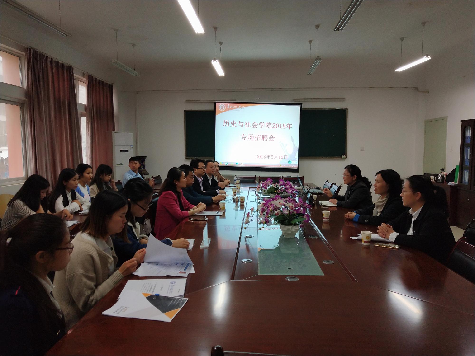 为了让毕业生更好地参与竞争,顺利就业,历史与社会学院于5月10日上午举办了毕业生专场招聘会,招聘会在明理楼第八会议室举行。