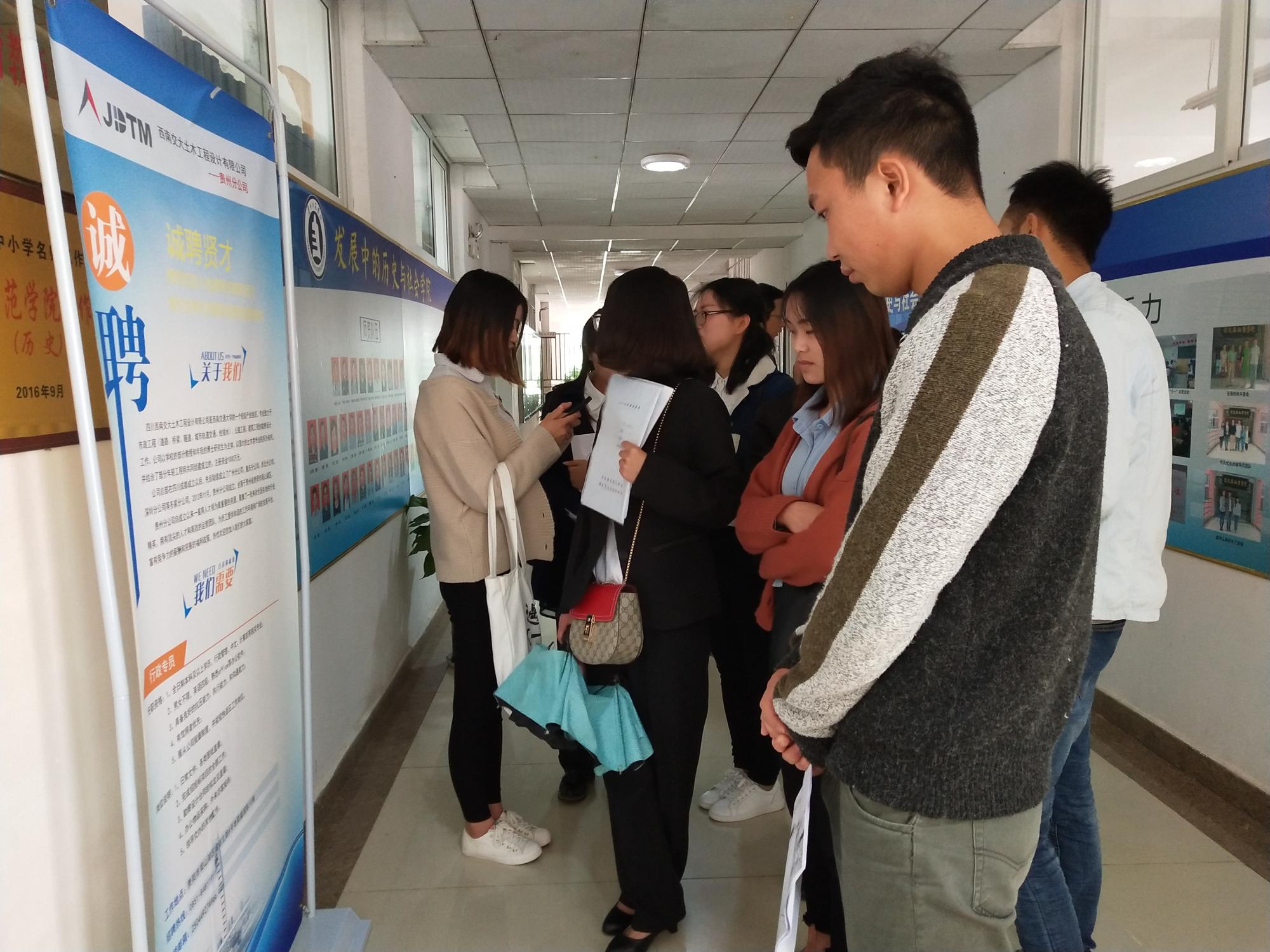 本场招聘会特邀请西南交大土木设计有限公司(贵州分公司)、中国阳明文化园、贵州旅游投资集团有限公司、恒宇科技有限公司等几家企业到我院进行现场招聘,几家公司提供了行政助理、办公室文秘、销售经理、景区讲解员等工作岗位。