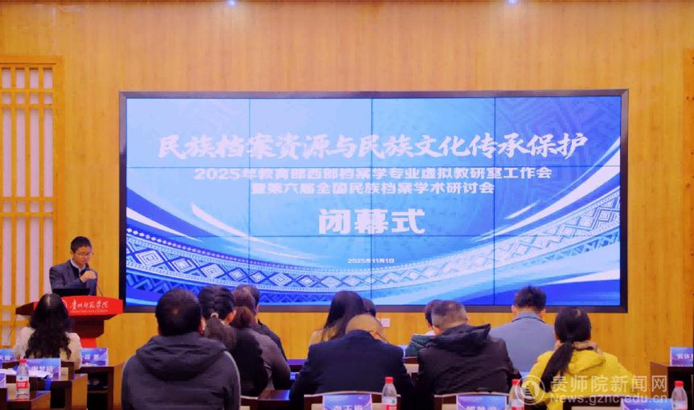 2025年11月1日,由教育部西部档案学专业虚拟教研室、民族档案学术协作网及贵州师范学院共同主办的“2025年教育部西部档案学专业虚拟教研室工作会暨第六届全国民族档案学术研讨会”在贵州师范学院印山书院隆重开幕。本次会议汇聚了全国多所高校、档案馆及研究机构的专家学者近70人,以“民族档案资源与民族文化传承保护”为主题,聚焦民族档案事业的传承保护、资源利用与学术创新,共探民族档案学发展新路径。
