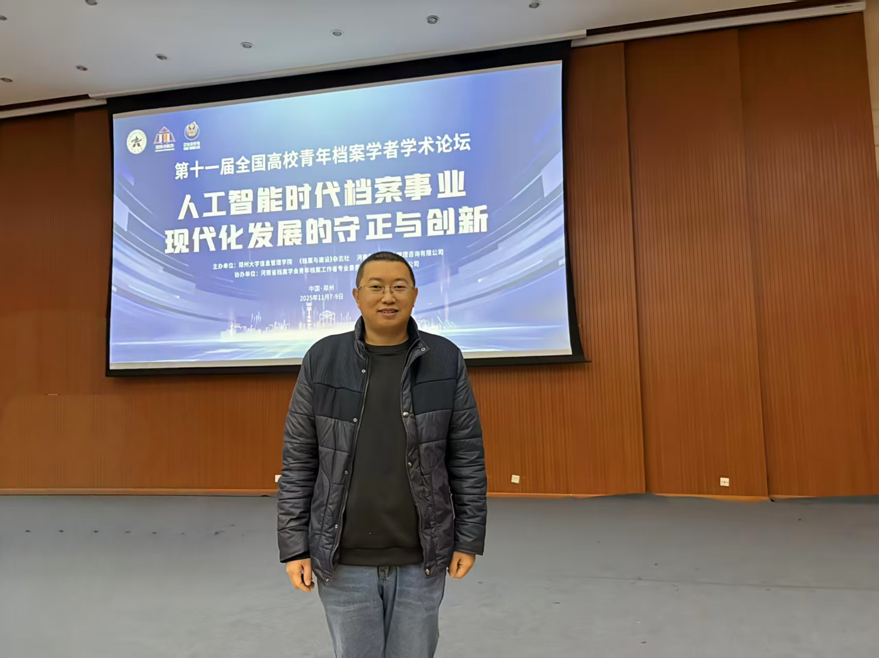2025年第十一届全国高校青年档案学者学术论坛,于11月7日至9日,在郑州大学举行,我校历史与档案学院档案系主任刘凯参加了本次会议。